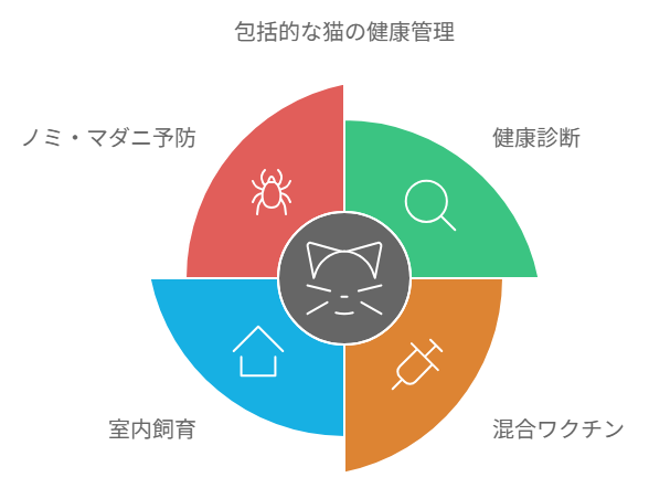 室内飼育することによりケンカによる咬傷や交通事故、落下事故、ネコ白血病、ネコエイズウィルスからの防御もでき、健康寿命も長くなります。